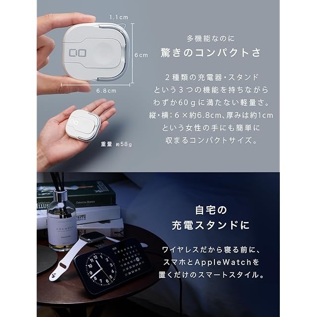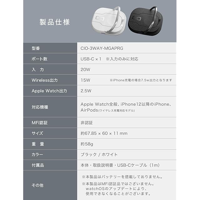 商品名:CIO NovaWave 3Way ワイヤレス充電器 3in1マグネット 最大7.5W iPhone 16 / 15 / 14 / 13 / 12 / AppleWatch AirPods 充電器 スマホスタンド (ホワイト)