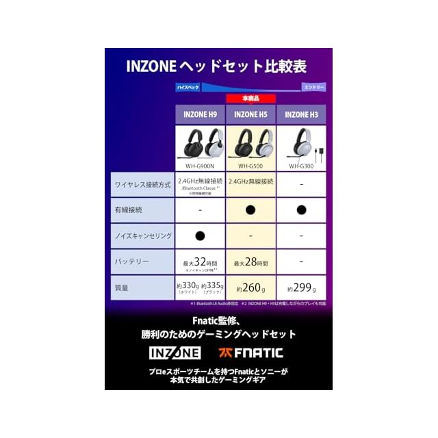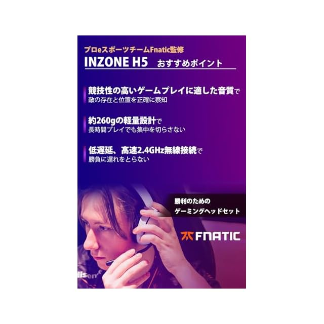 商品名:ソニー ゲーミングヘッドセット INZONE H5: WH-G500: モンスターハンターワイルズ推奨音質 /Fnatic監修 / ワイヤレス / 低遅延 / 有線接続ケーブル同梱 / 立体音響 / 軽量設計 約260g / 最大28時間バッテリー / 急速充電 / 長時間使用しても疲れづらい / ブームマイク付き / Perfect for PlayStation5 PS5 ホワイト