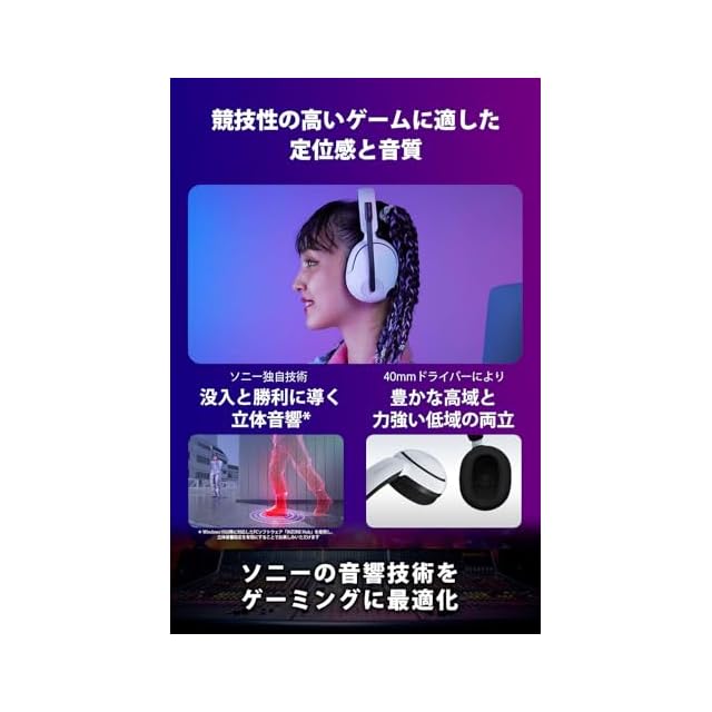 ゲーム向けに最適化されたソニーの360立体音響技術とハードウェア構造により、まるでゲームの世界に入り込んだかのような臨場感ある没入体験と勝利体験をプレイヤーにもたらします。また、PCソフトウェア「INZONE Hub」を使用することで、ゲームタイトル毎に合わせたサウンドのイコライザー調整や、ハードウェアの操作設定など、さまざまなカスタマイズが可能です。