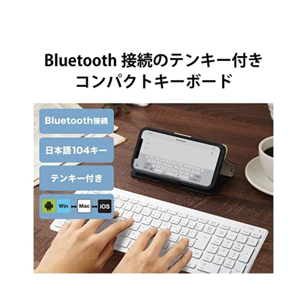 商品名:エレコム キーボード Bluetooth パンタグラフ コンパクトキーボード Windows・Mac・iOS・Android対応 ホワイト TK-FBP101WH