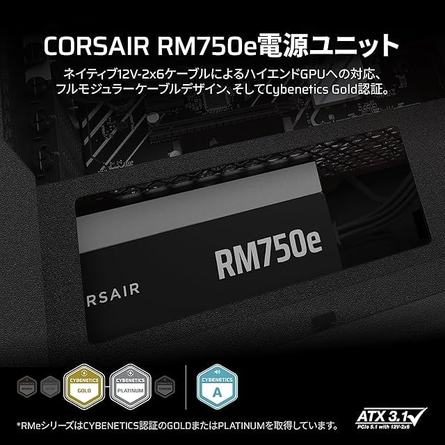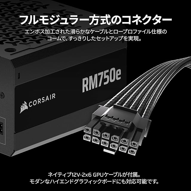 商品名:CORSAIR RM750e 2025モデル PC電源ユニット 750W PCIE 5.1 対応 ATX 3.1 認証済 フルモジュラー 12V-2x6 ケーブル付属 CP-9020295-JP