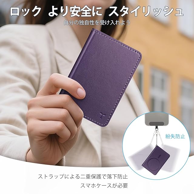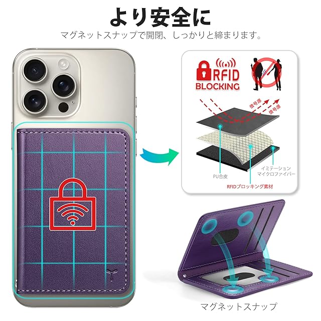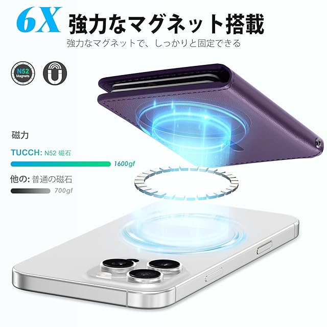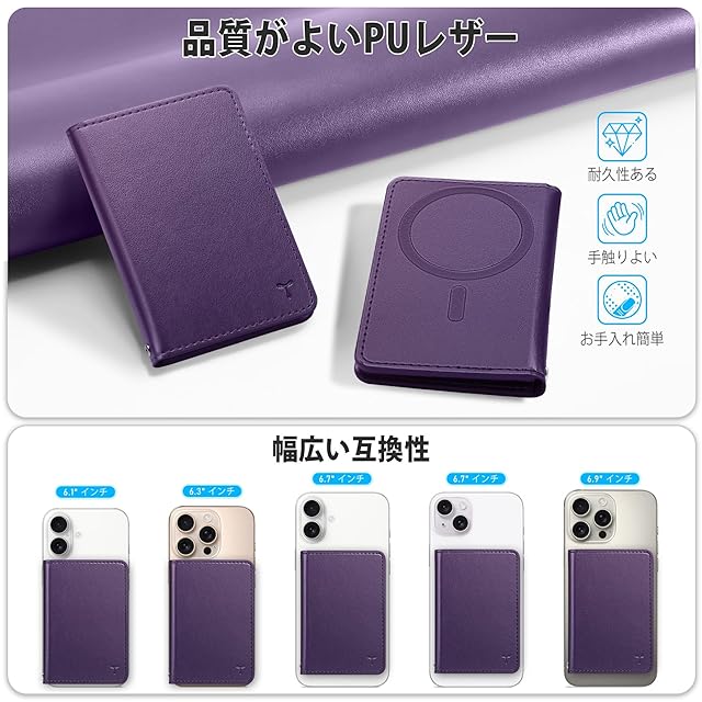 商品名:[TUCCH] スマホ カードケース 磁気吸着 6枚カード収納 [RFIDブロッキング] PU合皮 脱着簡単 軽量 背面 カードウォレット 磁気ウォレットケース iPhone 16/15/14/13/12シリーズ対応 ダークパープル