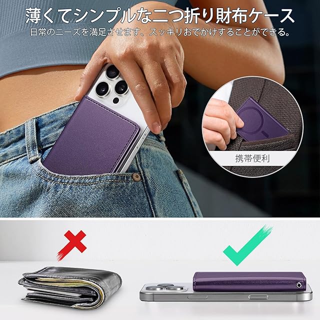 【幅広い互換性】このスマホカードケースはiPhone16/16 Plus/16 Pro/16 Pro Max/iPhone15/15 Plus/15 Pro/15 Pro Max/iPhone 14/14 Plus/14 Pro/14 Pro Max/iPhone13/13 Pro/13 Pro Max/iPhone12/12 Pro/iPhone 12 Pro Maxに対応します。ご注意:本商品はただ磁力吸着機能搭載のスマホやスマホケースだけに対応できます、(iPhone11/11Pro/11 Pro Max/7/8/SE2/SE3/XS Max/Xs/XRに対応しません)。ご購入前に、対応機種をしっかりとチェックしてください。