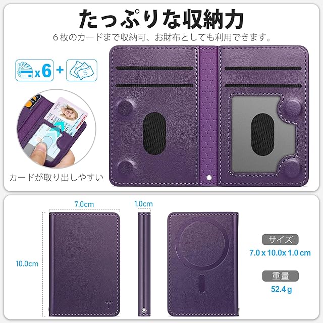 [TUCCH] スマホ カードケース 磁気吸着 6枚カード収納 [RFIDブロッキング] PU合皮 脱着簡単 軽量 背面 カードウォレット 磁気ウォレットケース iPhone 16/15/14/13/12シリーズ対応 ダークパープル | TREND DESIGN 家電専門店