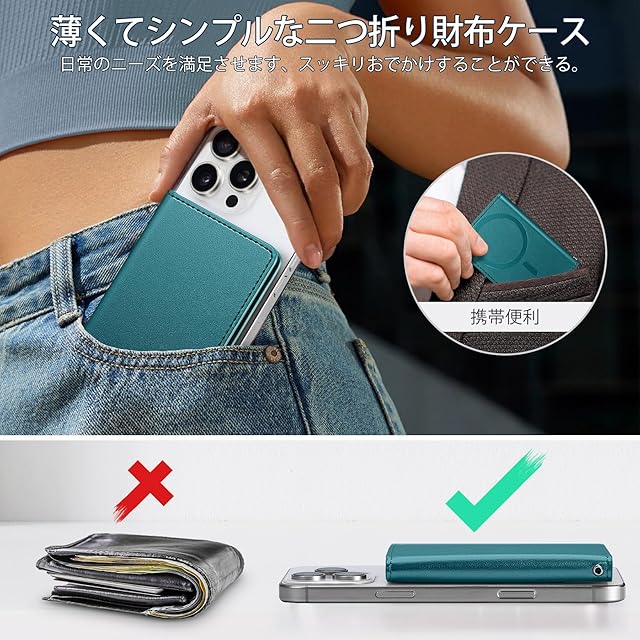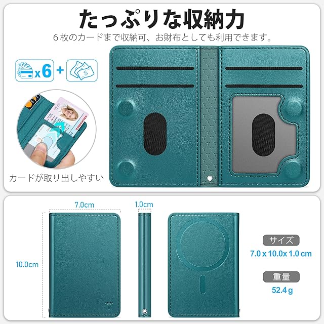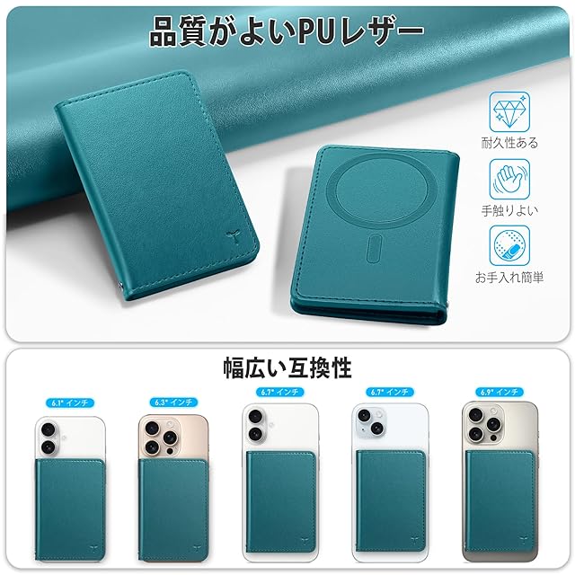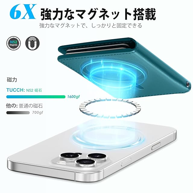 [TUCCH] スマホ カードケース 磁気吸着 6枚カード収納 [RFIDブロッキング] PU合皮 脱着簡単 軽量 背面 カードウォレット 磁気ウォレットケース iPhone 16/15/14/13/12シリーズ対応 ティールグリーン | TREND DESIGN 家電専門店