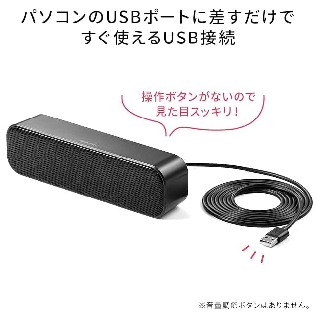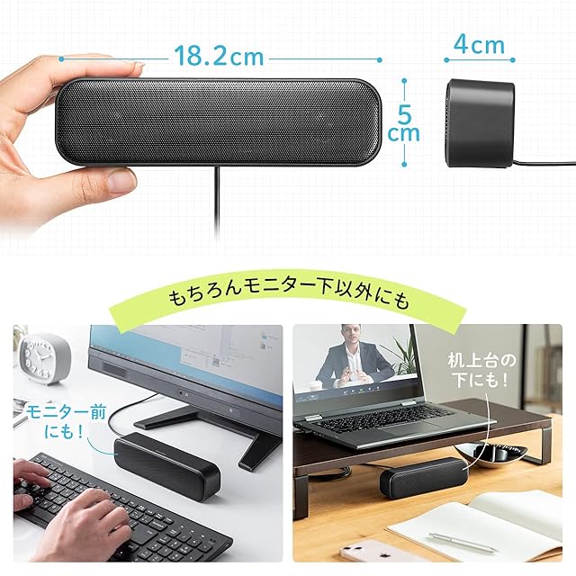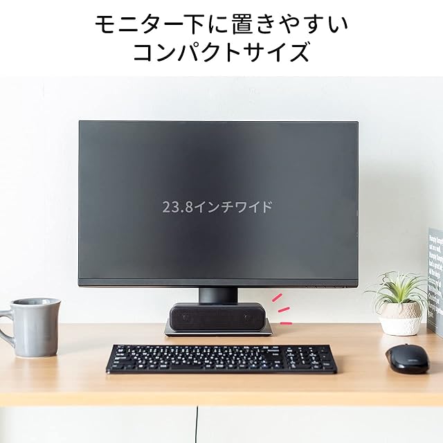 モニター下に置くのにちょうどいいコンパクトサイズの USBスピーカー です。