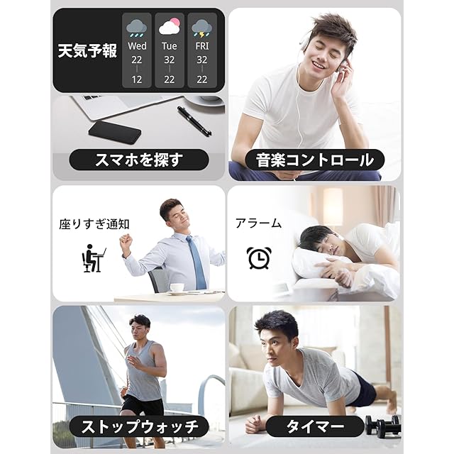 「着信通知機能付き」着信通知機能をサポートしています。電話がかかってきた場合、名前を確認することができ、必要に応じて電話を切断することができます(通話機能はありません)。また、Line、Facebook、Messager、Twitter、Whatsapp、Skype、Linkedin、Instagram、Viber、Gmailなど、多彩なメッセージアプリの通知をサポートしています。手元のスマートウォッチで通知を確認することで、いつでも大切な情報を手軽に確認できます。例えば、会議中や授業中、スマートフォンを取り出すことができなくても、手元のスマートウォッチでメッセージ通知を確認することができます。