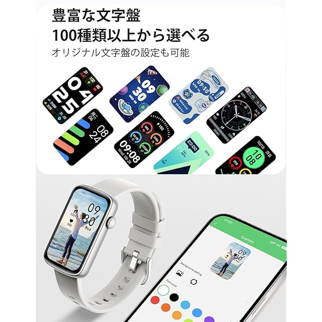 「100+文字盤·座りすぎ通知·生理周期」スマートウォッチ本体に5つの文字盤を搭載。専用アプリで100以上の文字盤をダウンロードできるだけでなく、アルバムや撮影により、お気に入りの写真を文字盤に設定することもでき、毎日気分に合わせたスタイルを楽しめます!専用アプリで座り過ぎのリマインダーの時間帯や間隔を自由に設定し、日常生活に無理なく取り入れられます。体を動かすタイミングを見逃しません。さらに、女性の生理周期を記録する機能では、アプリで生理周期の開始日と終了日を記録することで、次回の予想月経日や排卵日などを予測することができます。