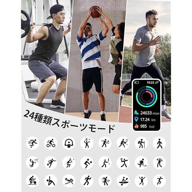 「24種類の運動モード·IP68防水」スマートウォッチL2には24種類の運動モードがあります。ランニング、ウォーキング、登山、ヨガなど、あらゆる種類の運動に対応しています。運動中にこのウォッチを身につけて、自分自身のフィットネスレベルを向上させましょう!さらに、このウォッチはIP68の防水機能を備えており、普段は手や顔を洗うときに外す必要はありません。しかし、海水、プール、お風呂、サウナ、温泉などの熱い水中では使用できません。これらの環境下で使用すると、ウォッチが損傷する可能性があります。使用する際には、この点にご注意ください。