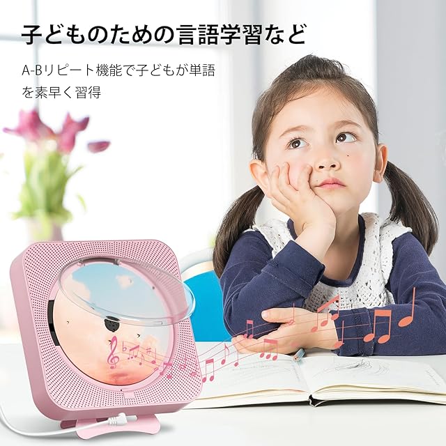 商品名:ENVYCLOUD cdプレーヤー リモコン付き CDラジカセ Hi-Fiスピーカー再生/LED ディスプレイ/タイマー/M ラジオ ブームボックス/USB再生対応/A-Bリピート再生 cdプレーヤー bluetooth 音楽再生/語学学習/胎児教育 日本語説明書(ピンク)