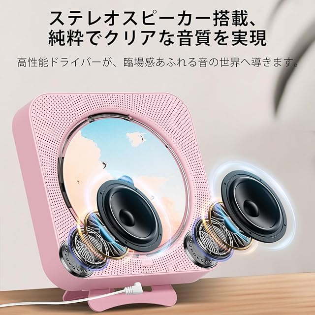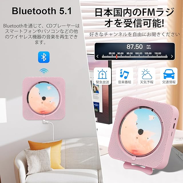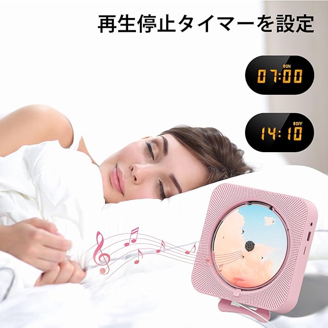 【壁掛け&卓上対応cd プレーヤー】 ポータブルcdプレーヤーは背面にスタンドを備えており、デスクの上でも安定して設置できます。付属の取り付けキットを使えば、壁掛け設置も簡単にでき、省スペースにも最適です。5メートル以内でリモコン操作が可能なほか、タイマー機能も搭載しており、好きな時に自由に音楽をお楽しみいただけます。
