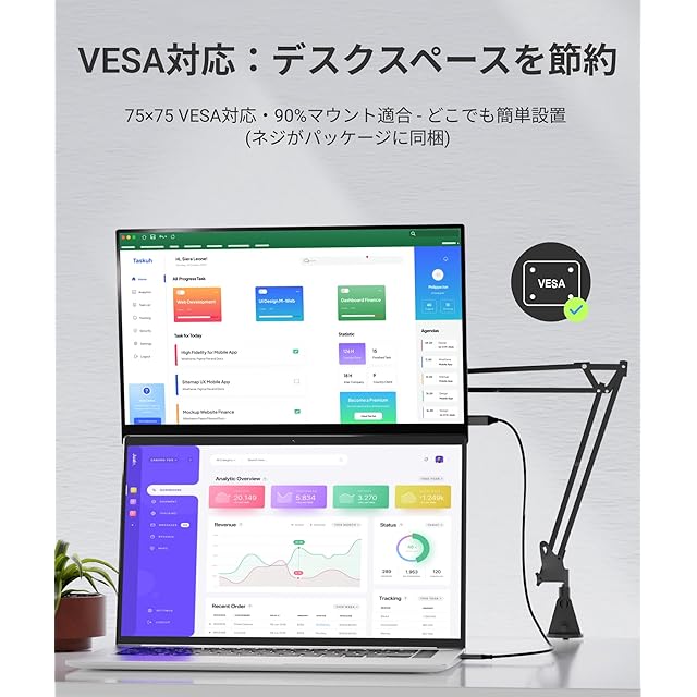 Ingnokモニターは、ポータブルカバーと付き、モニター本体の裏に4つの75*75mmVESA穴も搭載します。VESA取り付け用のネジも4本付属しており、使いやすく、簡単に取り付けることができます。これにより、作業効率とシンプルさを最大限に引き出すことができます。
