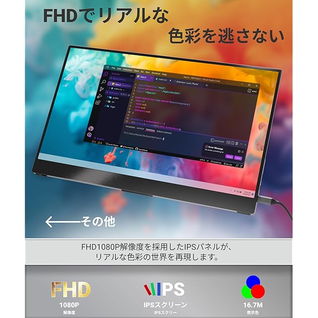 Ingnokモバイルモニターは、非光沢スクリーンで、178度の広い視野角を持ちます。1920*1080のフルHD解像度、95%sRGB、8bitを備えて、目を保護しながら、鮮やかな色を再現します。このモニターは、高い色再現性と広い視野角を提供し、フルHD解像度により、鮮明で詳細な映像を楽しむことができます。