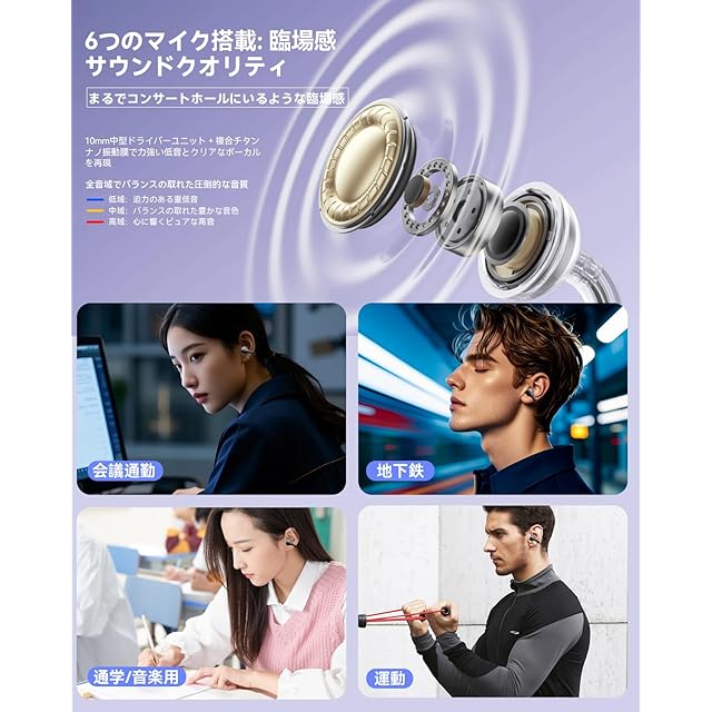 【Hi-Fi音質&臨場感あふれるサウンド】このインイヤーBluetoothイヤホンは10mmダイナミックドライバーを搭載し、迫力のあるサウンドを体感できます。全音域でバランスの取れた、圧倒的な高音質。 深く響く重低音 - 体の芯まで響くパワフルな低音 繊細な中音 - 楽器のディテールまで忠実に再現 クリアな高音 - 繊細でリアルな音の輝きを実現。