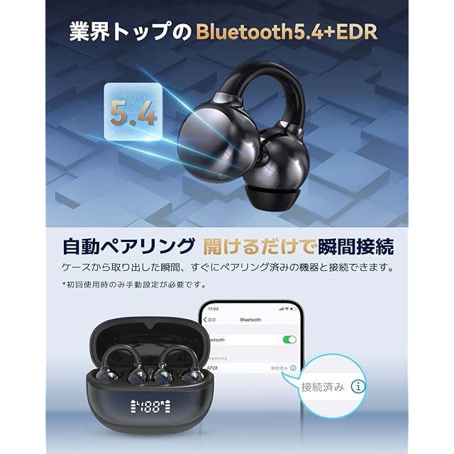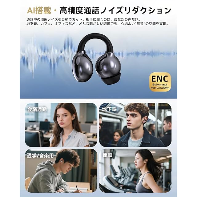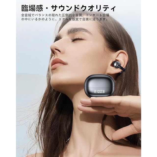 商品名:ワイヤレスイヤホン Bluetooth 6つシリコンマイク搭載ENC通話AI 80時間音楽再生2025最新bluetooth 5.4クリップイヤホン空気伝導耳挟み式オープンイヤー イヤホンIPX7防水全帯域音質低遅延Type-C充電ブルートゥースイヤホン骨伝導の革新会議/運動/ゲーム/通学通勤/iPhone/Android対応 (black)
