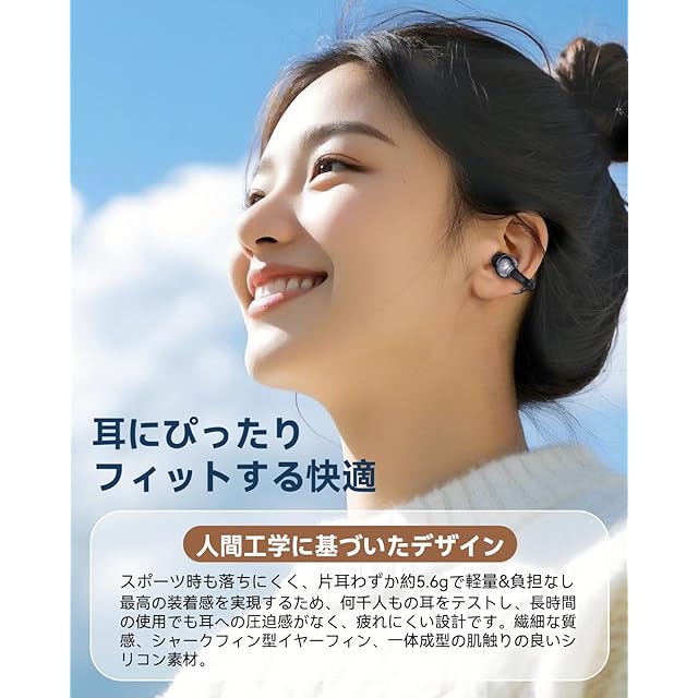 【人間工学に基づいたデザイン】このBluetoothイヤホンは、人体工学に基づいたデザインで、耳の自然な形状にぴったりフィットします。長時間の使用でも快適で、圧迫感がなく、スポーツ中でもしっかりと装着され、落ちる心配はありません。ランニングやサイクリング、ジムでの高強度トレーニングなど、激しい動きでも安心して使えます。軽量で柔らかなイヤーチップが、長時間の使用でも快適さを提供し、音楽や通話を自由に楽しめます。忙しい日常でも、スポーツ時でも、あなたのライフスタイルにぴったりのイヤホンです。弊社はお客様に信頼される会社となることを目標として日々努力しております。製品に関してお困りな事や不具合等がございましたら、ご心配なさらないでご連絡ください。連絡方法:「アカウントサービス」>「注文履歴」>「販売元」>「質問する」。