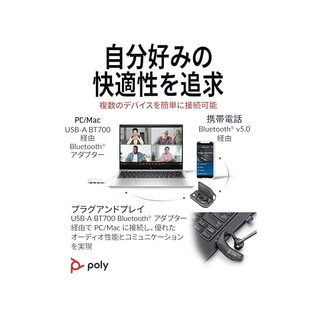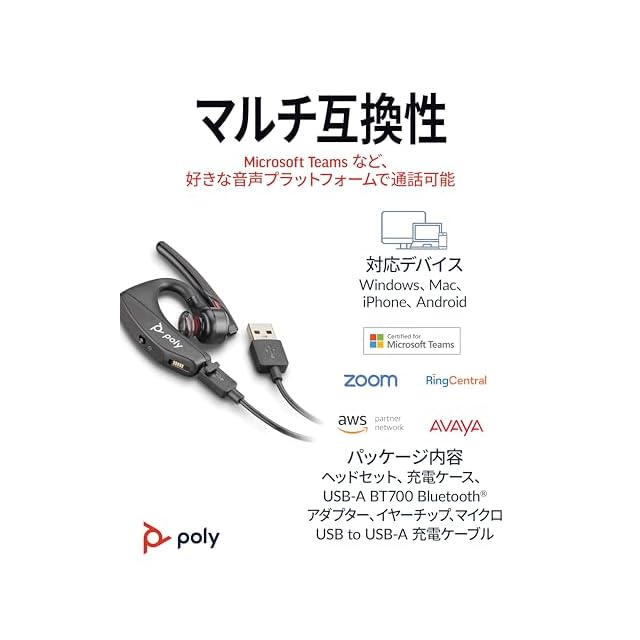 商品名:PLANTRONICS Poly(ポリー) Voyager 5200 Bluetooth ワイヤレスヘッドセット 片耳 モノラルイヤホンタイプ PC接続用 BT700ドングル 専用充電ケース付属 ノイズキャンセリングマイク PC/スマートフォン対応 国内正規品2年