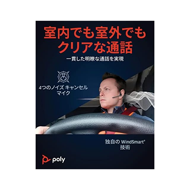 4つのマイクノイズキャンセリング:Voyager 5200は、4つのマイクと独自のDSPを搭載し、電車や車の交通音や人ごみなどのバックグラウンドノイズをキャンセルし、クリアな通話を提供します。