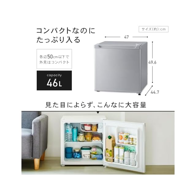 商品名:アイリスプラザ 冷蔵庫 47L ブラック 幅47cm PRC-B051D-B 直冷式 1ドア 右開き 新生活 一人暮らし