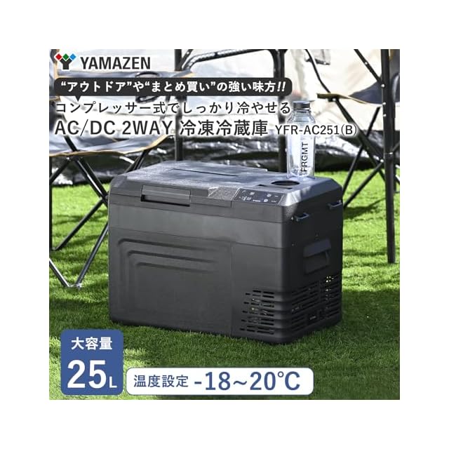 [山善] ポータブル冷蔵庫 冷凍冷蔵庫 25L コンプレッサー式 (AC/DC 2WAY電源) 車載 冷蔵庫 冷凍庫 小型 クーラーボックス 節電モード搭載 ブラック YFR-AC251(B) | TREND DESIGN 家電専門店