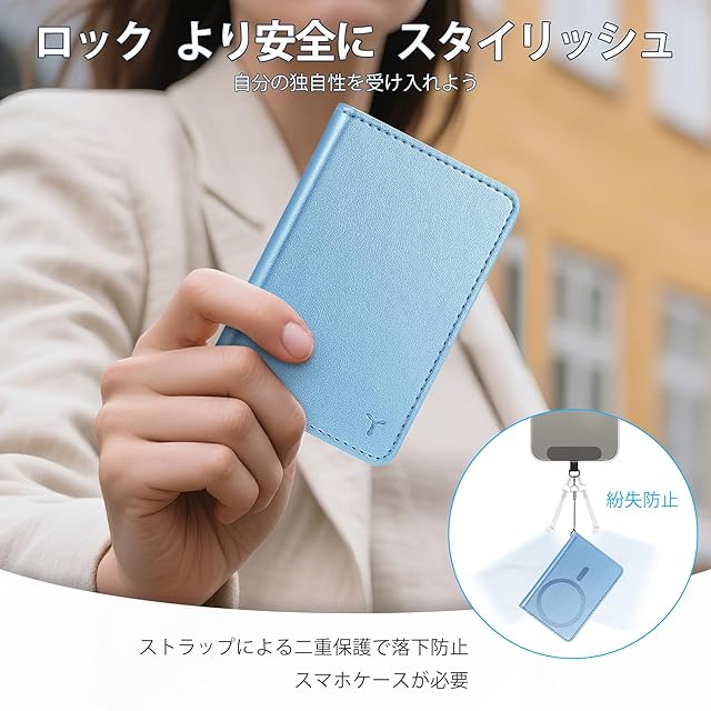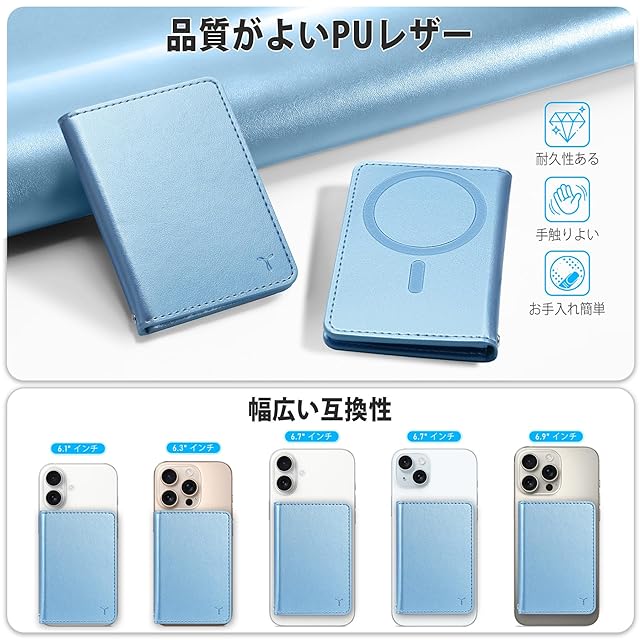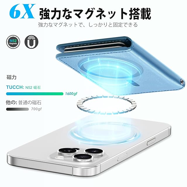 商品名:[TUCCH] スマホ カードケース 磁気吸着 6枚カード収納 [RFIDブロッキング] PU合皮 脱着簡単 軽量 背面 カードウォレット 磁気ウォレットケース iPhone 16/15/14/13/12シリーズ対応 ブルー