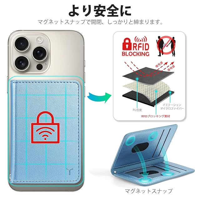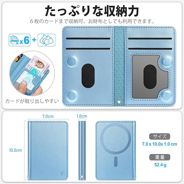 [TUCCH] スマホ カードケース 磁気吸着 6枚カード収納 [RFIDブロッキング] PU合皮 脱着簡単 軽量 背面 カードウォレット 磁気ウォレットケース iPhone 16/15/14/13/12シリーズ対応 ブルー | TREND DESIGN 家電専門店