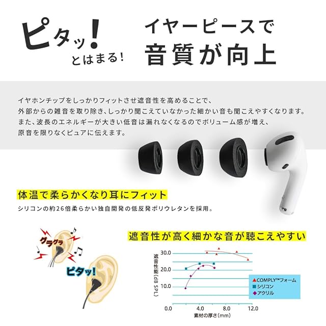 ✅【快適な着用感】COMPLYフォームチップは、体温に反応し外耳道の独特の形状に合わせて広がる形状記憶フォームで作られており、ダイナミックなフィット感を生み出し、装着感をカンタンに向上させます。COMPLYフォームチップはシリコーンよりも優れたグリップを提供可能にします。 AirPods Proの落下や紛失に気を煩わすことはありません。