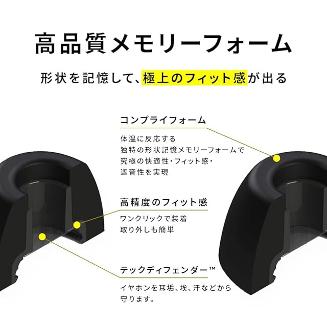 ✅【独自のオーバル形状】COMPLYフォームチップは、特殊コアを備えたカスタム形状を実現し、あなたの耳孔に完璧なフィット感と快適性を提供いたします。不意の脱落を心配することなく自由に音楽が楽しめます。また、大切なイヤホンを埃や耳垢から守るフィルターがつきます。ワンタッチで取り付けも非常に簡単です。