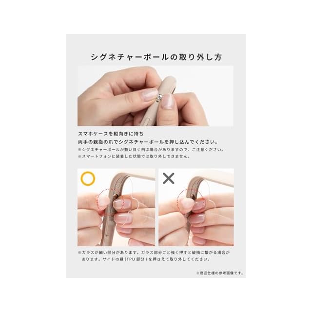 Galaxy S25 UltraはケースをつけたままSペンの取り出し、収納が可能 / クリアな背面に、シールや写真を入れてカスタマイズが可能 / ガラス飛散防止加工で、万が一の破損も安心 / 手にしっかりフィットする「くびれ」形状で持ちやすさ抜群 / 背面は表面硬度9Hで傷が付きにくい / 強化ガラス複合材とTPUで、端末をしっかり保護 / 画面とカメラを守る、縁高設計 / シンメトリーな設計で背面のガタつきを防ぐ / ケースを付けたままでも操作感を損なわないサイドボタン / シグネチャーボール搭載でストラップの付け方が広がる / 選べる2カ所のストラップホール ※スピーカー穴が特殊なため、Hang and ダブルリングホルダーまたは2点吊りタイプのストラップホルダーはお使いいただけません。