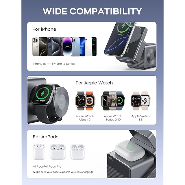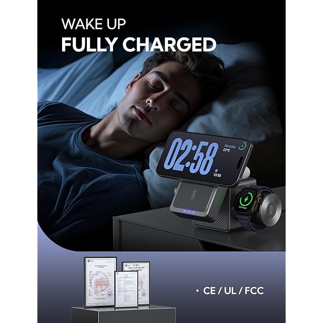 【45Wの驚異的な充電能力】iPhoneはMagSafe対応で最大15Wの急速充電が可能、Apple Watch 充電器は5Wの出力をサポートします。多機能の上に、業界トップの充電力も備えています。充電台座にtype-C出力対応充電口も配置しており、充電ドックとしてケーブルでiPadなどにも充電できます。パススルー充電して総計45W出力達ます。【ご注意】45W充電アダプターが同梱しています。