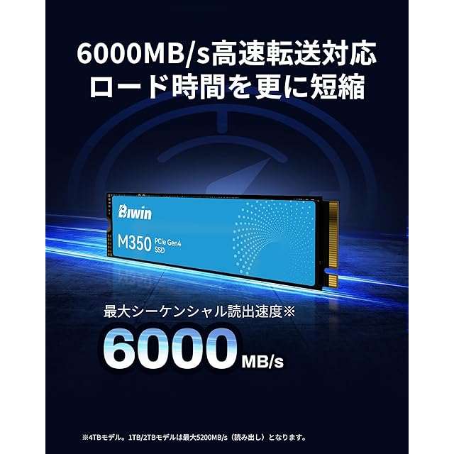 商品名:Biwin M350 2TB SSD M.2 Type 2280 PCIe Gen4×4 最大読込:5200MB/s (R:5200MB/s、W:4800MB/s) 内蔵SSD 高耐久 PS5/PS5 Pro動作確認済み メーカー5年