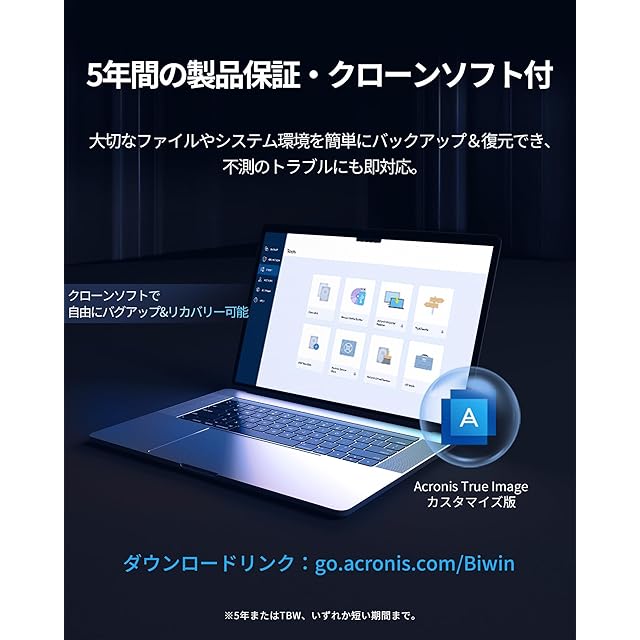 【5年対応】:Biwin SSDシリーズ商品には5年(日本国内のみ)が付き、万一不具合と思われる症状がある場合は、注文履歴→注文情報(内容)→販売元までお問い合わせください(外部損傷がある場合は対象外です)。