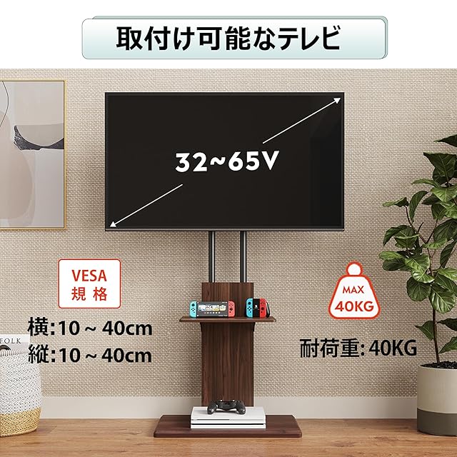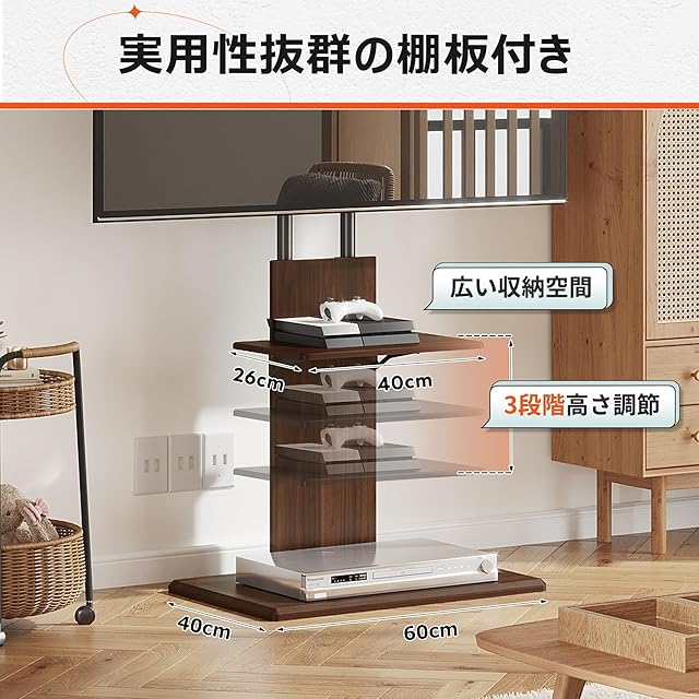 余裕な棚板収納スペース:幅40×奥行26cmの棚板付きで、余裕がある収納空間でゲーム機器やDVDも収まります。また、3段高さ調節で置く物やテレビのサイズに合わせて細かな高さ調整できます。