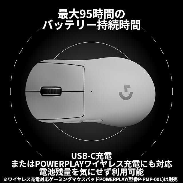 改善された電力効率/約1時間のフル充電で、約95時間の連続使用と省エネ性能を実現/プレイしながらのワイヤレス充電が可能な「POWERPLAYワイヤレス充電システム」にも対応、電池残量を気にせず利用できます ※POWERPLAY(G-PMP-001)は別売です
