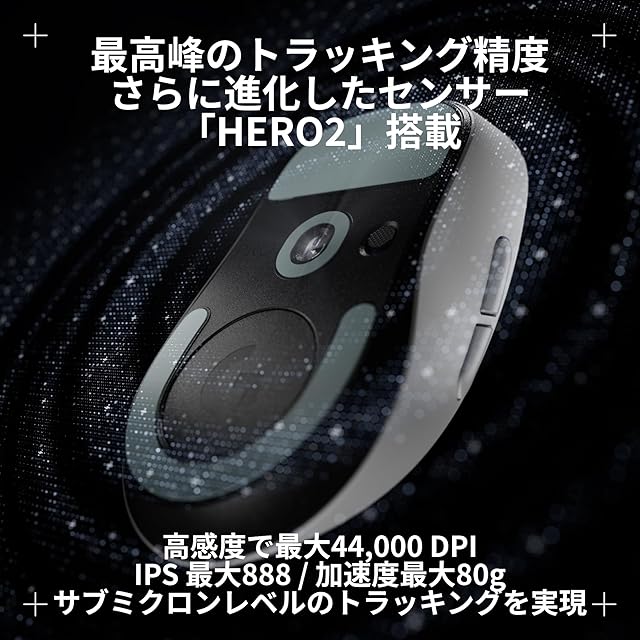 ロジクールG独自のHERO2センサー搭載/高速の8KHzポーリングレートにも対応/最大 32K DPIと888 IPSでサブミクロンレベルのトラッキング精度/より細かいニーズに合わせた設定が可能