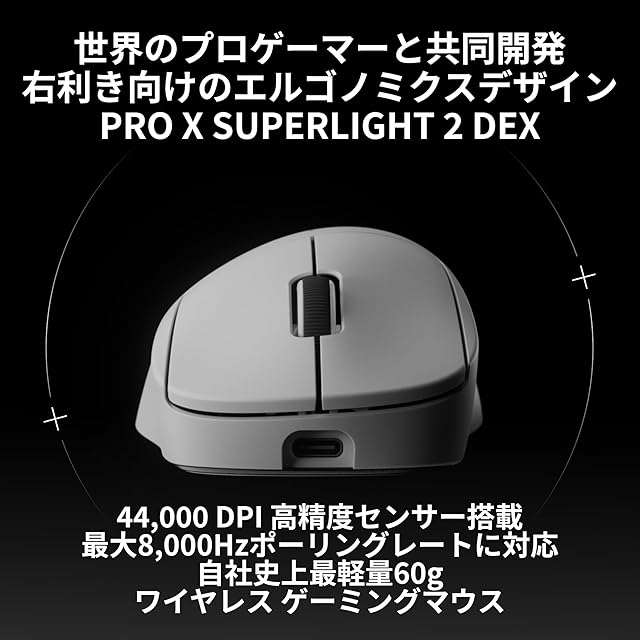 右利き向けのエルゴノミクスデザイン 長時間の使用でも疲れにくい超軽量ゲーミングマウス「PRO X SUPERLIGHT 2 DEX」/32K DPI高精度センサー、最大8K Hzポーリングレートに対応/自社史上最軽量60g、精確さと使用感を追求したワイヤレスゲーミングマウス
