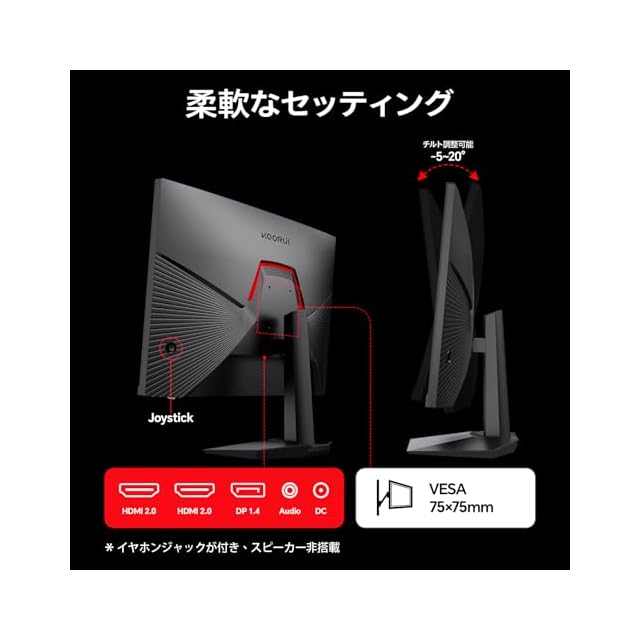 接続:HDMI2.0×2、DisplayPort1.4×1、ヘッドフォンジャック×1、75×75mmVESAマウント対応