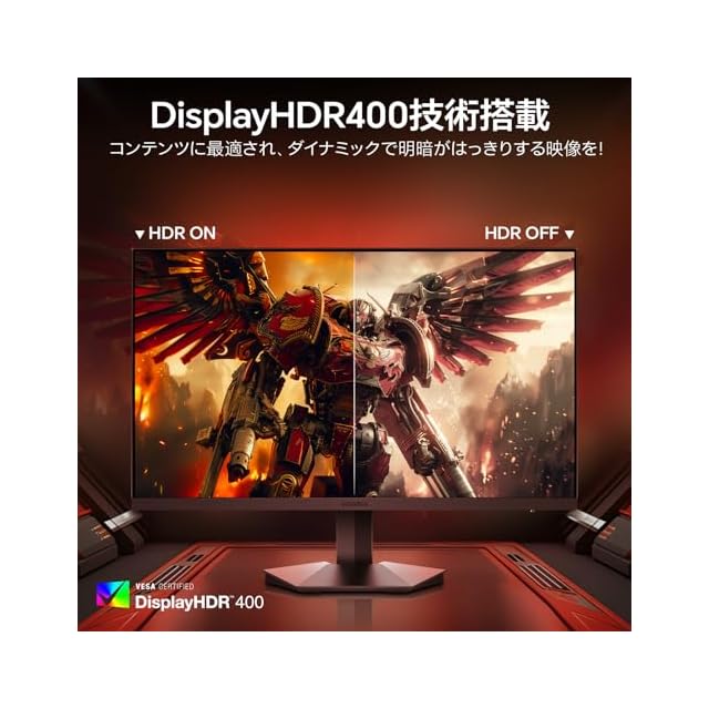 美しい映像:Display HDR400対応、明部も暗部もくっきりする、臨場感向上!スリムベゼルデザイン、ブルーライトカット技術搭載する高画質の1920×1080P 27型 pcモニター