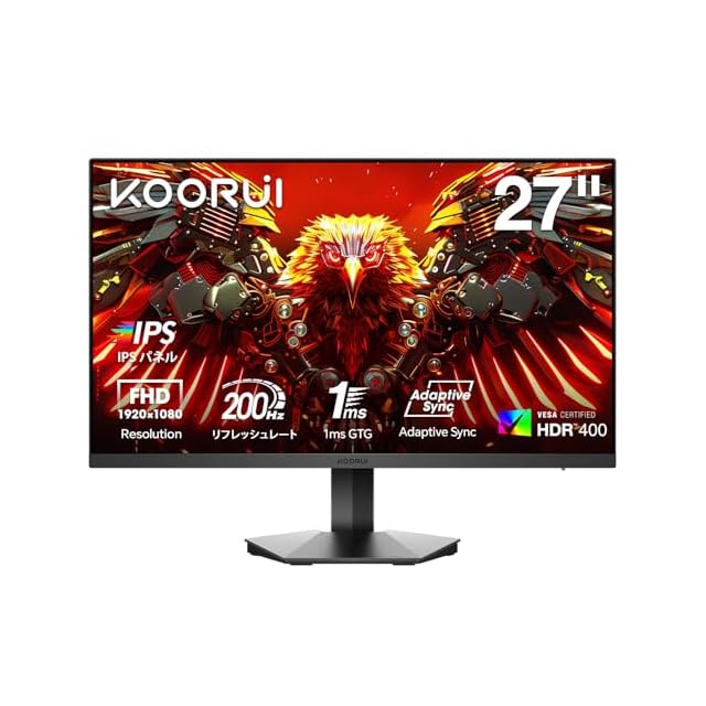 商品名:KOORUI モニター ゲーミングモニター 27インチ IPS 200Hz 1ms GTG HDR400 非光沢 フルHD 90%DCI-P3ブルーライト軽減 HDMI DisplayPort Adaptive Sync VESA対応 G2711P