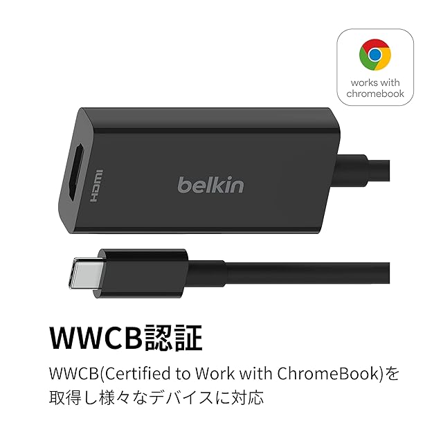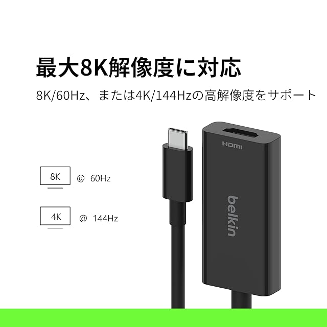 商品名:Belkin USB-C to HDMI変換アダプター HDMI2.1 8K/60Hz 4K/144Hz iPhone 15 / iPad/iPad Pro/iPad mini/MacBook/MacBook Pro/MacBook Air/Windows/Surface/Chromebook 対応 AVC013btBK