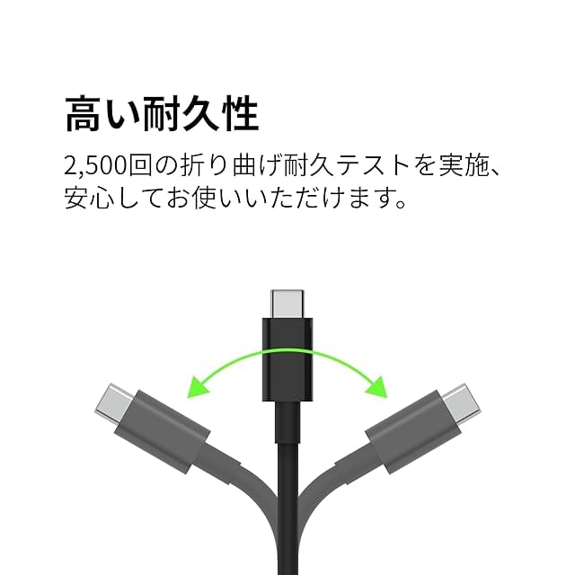 耐久性の高いケーブル素材 。USB-IF認証取得