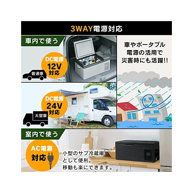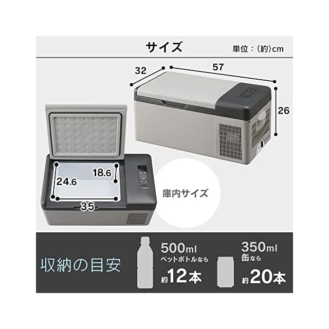 電源/交流:100V、50-60Hz(アダプター使用)、直流:12V/24V 消費電力:急速モード:45W、節電モード:30W 温度設定:-20~20℃