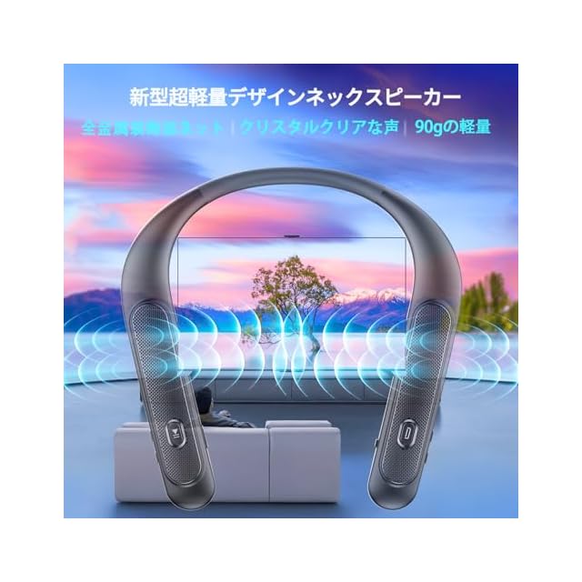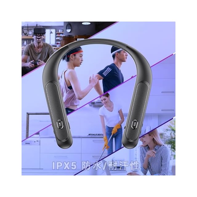 【テレビに接続可能&幅広いシーンで活躍】Bluetoothスピーカーはテレビと簡単に接続できます。ネックスピーカーと耳の位置が近くて耳元でクリアで音声が聞けます。そのため、映画やドラマなどの視聴時に、ワイヤレスで高品質な音を楽しむことができます。さらに、スポーツやジョギングなどのアクティブなシーンでも活躍し、自由な動きを妨げません。(※ご注意:開放感があるネックスピーカーですので、多少の音漏れはしますが、気になるならどうぞよくご検討ください)。