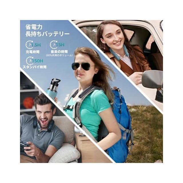 【人間工学に基づいたネックホルダーデザイン&全金属装飾面ネット超軽量】人間工学に基づいた首周りの成型設計で柔らかくフィットし、わずか90gの軽量設計により装着時の重さを感じさせません。外観は全金属の装飾面網を採用し、スタイリッシュで美しく、軽量で快適。高齢者や子供を含むあらゆる年齢層の方々に最適で、室内でのレジャーや户外活動にもぴったりです。