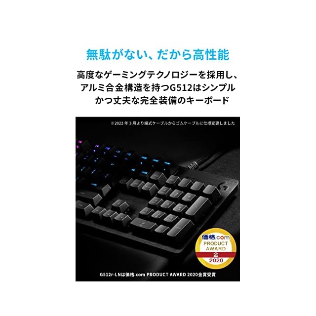 商品名:Logicool G ゲーミングキーボード G512r-LN 有線 リニア 赤軸 静かなタイピング GXスイッチ 日本語配列 LIGHTSYNC RGB USB パススルー ゲーミング キーボード メカニカルキーボード G512 PC window mac Chrome ブラック 国内正規品 【 ファイナルファンタジー XIV 推奨モデル 】