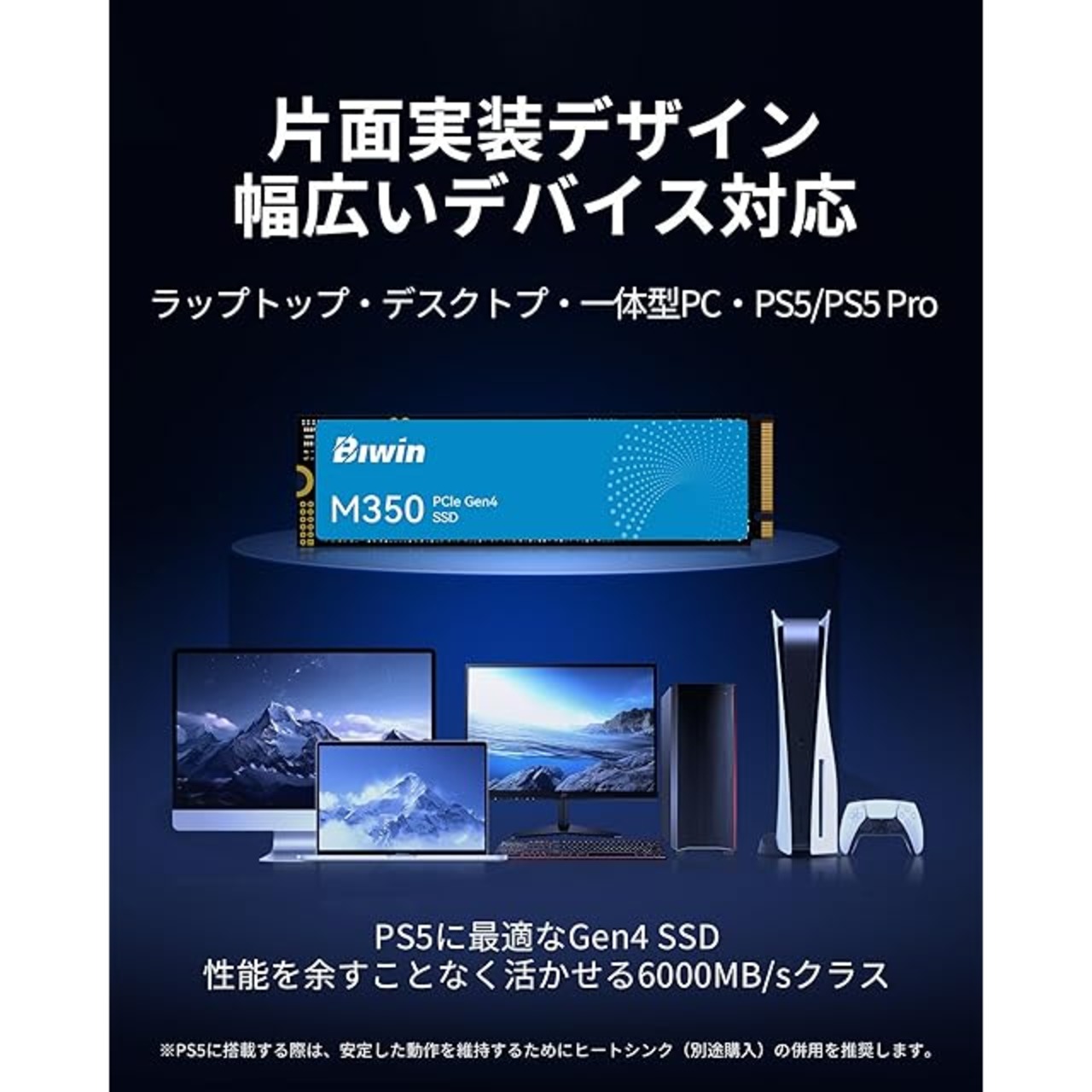 商品名:Biwin M350 1TB SSD M.2 Type 2280 PCIe Gen4×4 最大読込:5200MB/s (R:5200MB/s、W:4800MB/s) 内蔵SSD 高耐久 PS5/PS5 Pro動作確認済み メーカー5年