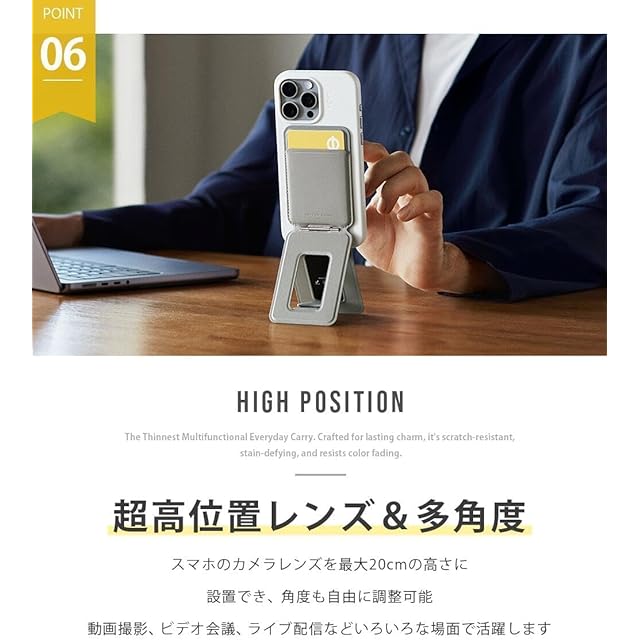 【様々なシーンで活躍!超高位置レンズ&多角度】 スマホのカメラレンズを最大20cmの高さに設置でき、角度も自由に調節することが可能です。動画撮影、ビデオ会議、ライブ配信などで活躍します。