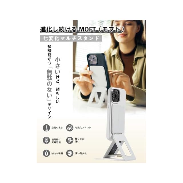 商品名:MOFT 七変化マルチスタンド 【全機種対応/アイアンリング付き 】 MOVAS iPhone15 スタンド 14/13/12 シリーズ マグネット スマホスタンド MagSafe対応 多角度調節 薄型軽量 折り畳み式 ミニマリスト 全機種対応 (ミスティグレー)