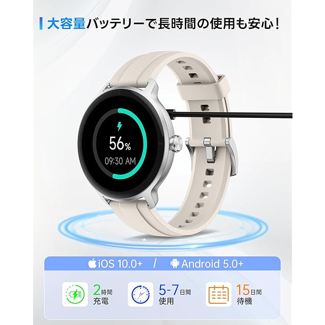 【5-7日のバッテリー持続&実用機能満載】このスマートウォッチは、一度の充電で5〜7日間の連続使用が可能な長寿命バッテリーを搭載しています。さらに、天気予報、音楽制御、アラーム通知など、日常で役立つ機能が満載です。天気予報機能では、外出先での天候変化を事前に把握でき、音楽制御機能では、スマートフォンを取り出さずに音楽の再生や停止が可能です。アラーム通知機能は、重要な予定やリマインダーを設定でき、時間管理がより効率的になります。