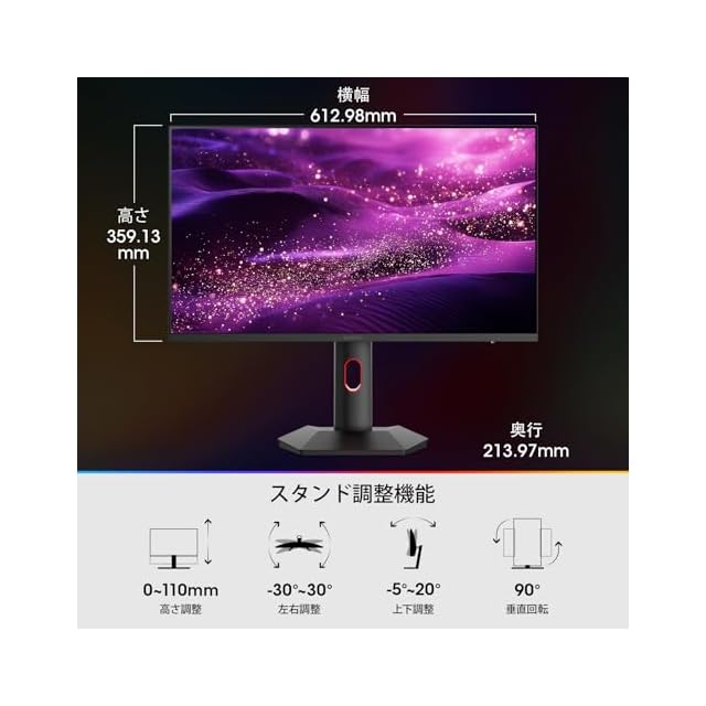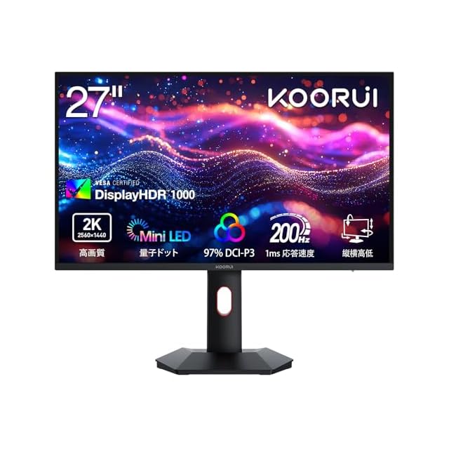 商品名:KOORUI QD 量子ドットMini LED ゲーミングモニター 27インチ WQHD 2560×1440 Fast IPSパネル 200Hz 1msGTG高速応答 HDR1000 Adaptive Sync対応 Adobe RGB 99%/sRGB100%/ 縦横回転 高さ調節/PIP PBP機能/HDMI2.1 DP1.4 /VESAマウント対応,S2721PM